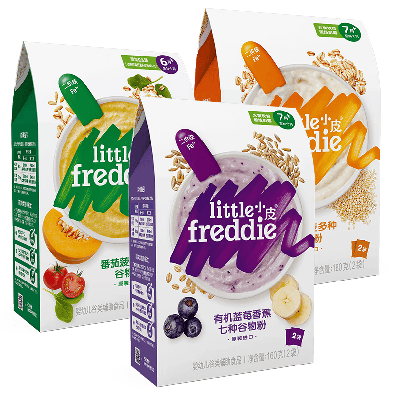 小皮品牌源于美国儿科学会的适用喂养指南,努力于为婴长儿供给健康养分的辅食选择。其产物颠末科学搭配,出格适合7个月以上的宝宝。每盒米粉都富含蓝莓、藜麦和菠菜等天然成分,不只可以或许熬炼宝宝的吞咽能力,还能帮帮宝宝更好地接收养分。